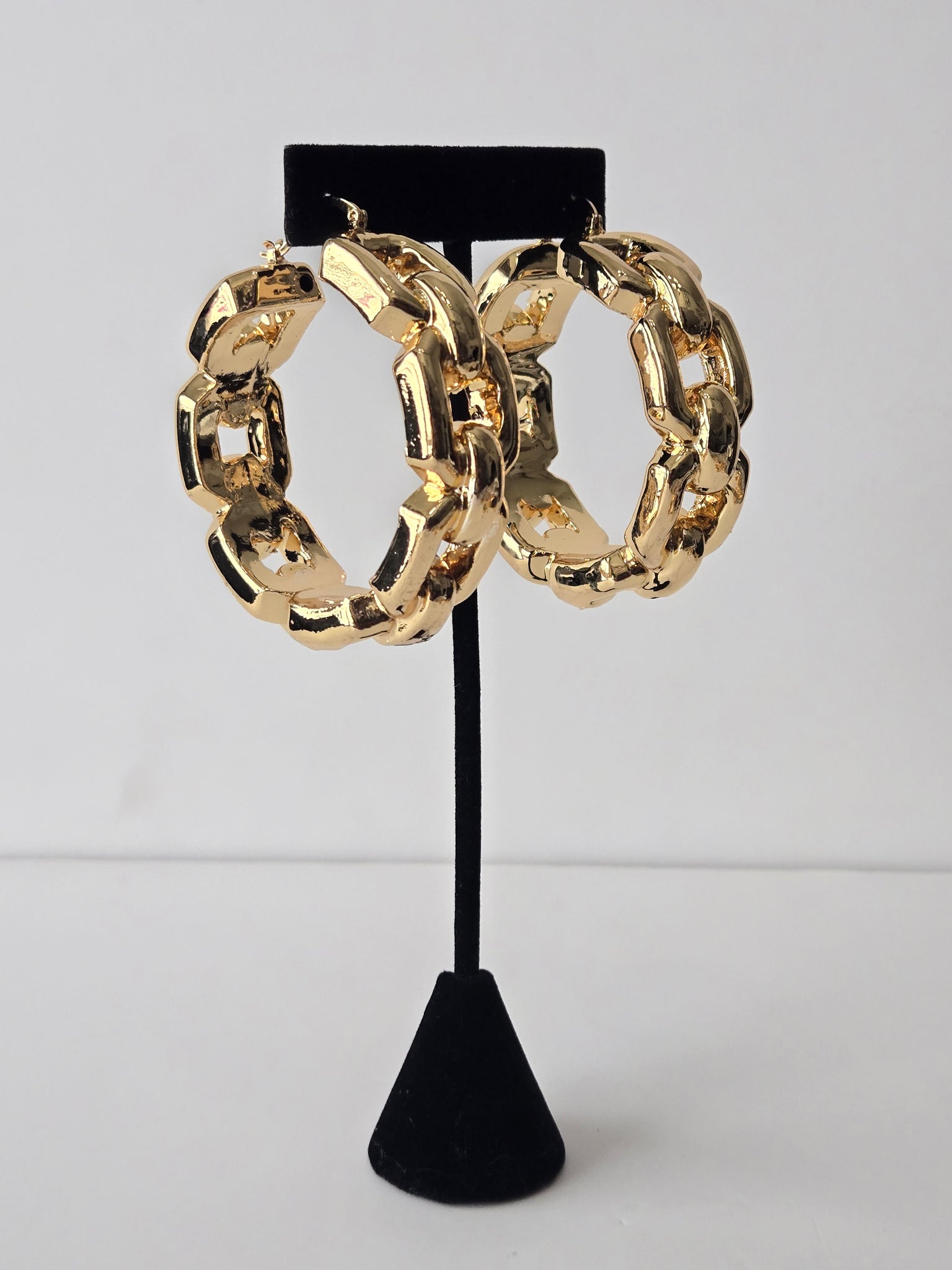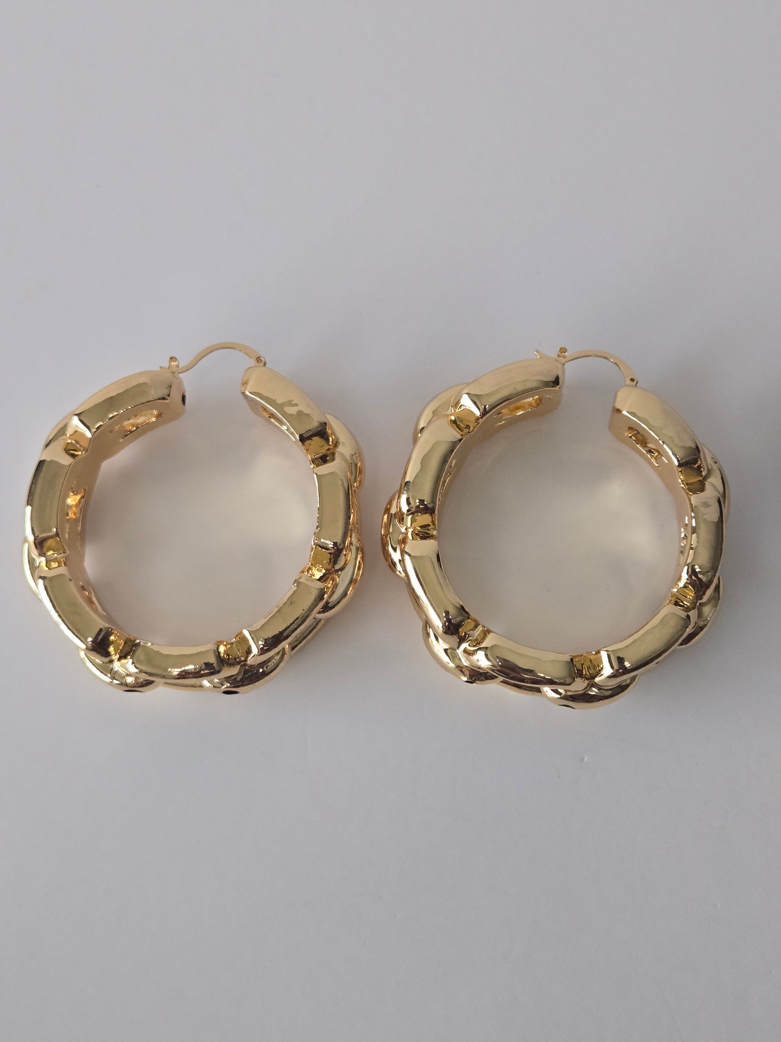 • Load image into Gallery viewer, 18K Gold Plated Bold Chain Hoop Earring